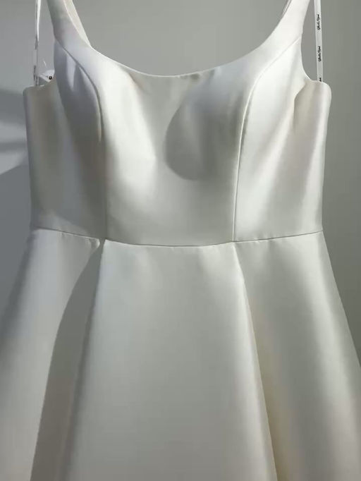 Ex Sample in good condition, dry cleaned. it has 2 small imperfections - the zip works perfectly but the part you hold to run the zip has come apart and the fixings for the detachable bow have come off, both easily rectified by seamstress when alterations made.